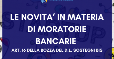 MORATORIE BANCARIE: LE NOVITA’ CONTENUTE NELL’ART. 16 DELLA BOZZA DEL D.L. SOSTEGNI BIS Le imprese possono chiedere ulteriori 6 mesi (cioè fino al 31/12/2021) di proroga delle Moratorie bancarie inizialmente richiesta ai sensi del Decreto Cura Italia e prorogata dall’iniziale termine del 30/09/2020 fino al 30/06/2021. La richiesta può avere ad oggetto solo la quota […]